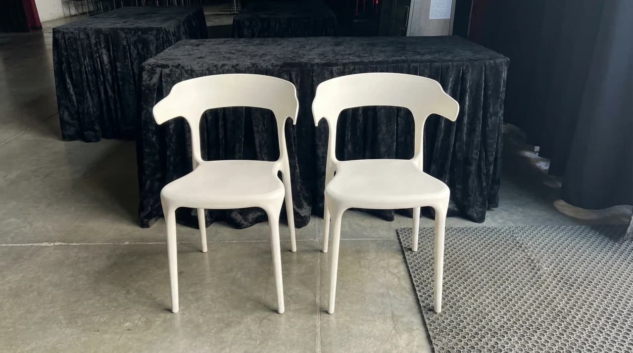 Аренда стула "Форма" — современная геометрия комфорта для вашего события! Стул "Форма" отличается лаконичным, но выразительным дизайном, который сразу задаёт стиль всему пространству. Плавные линии, эргономичная форма спинки и сиденья, устойчивая конструкция — всё это делает его отличным выбором для организации банкетов, конференций, презентаций, модных показов, фотостудий и деловых встреч..